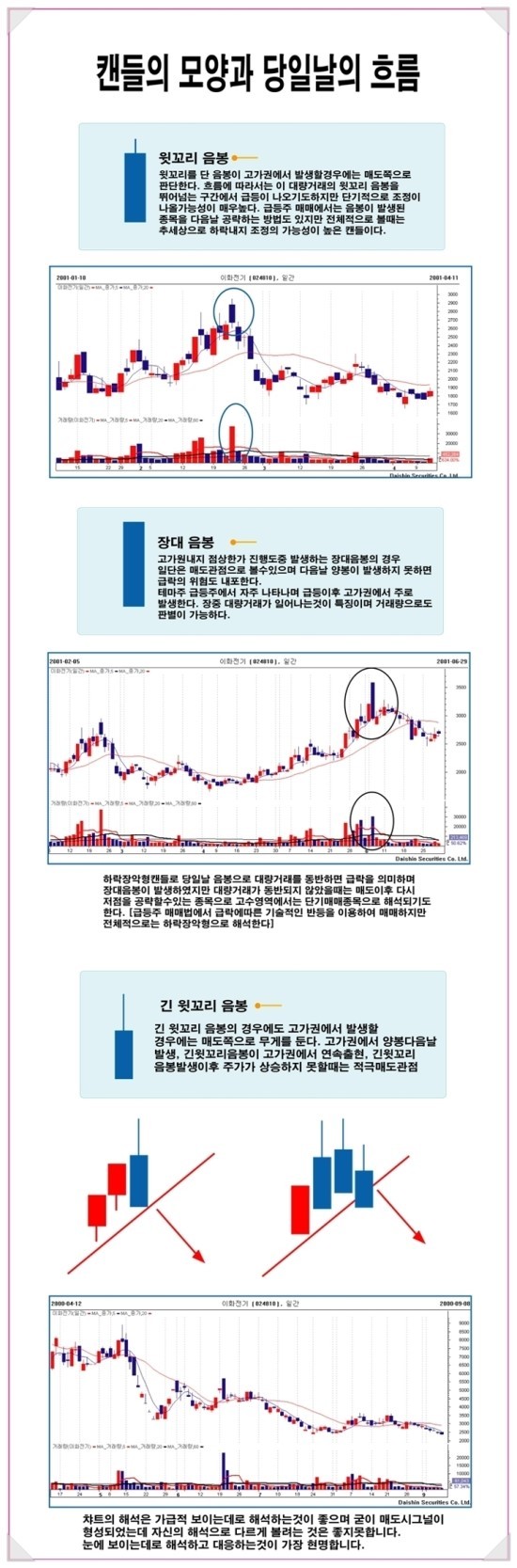 몸통이 길면 길수록 당일 주가가 크게 오르거나 하락한 것을 뜻합니다.